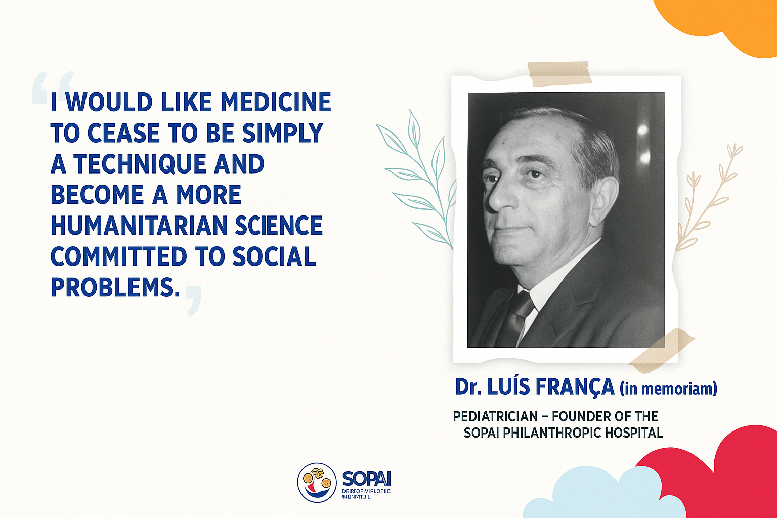 After the passing of Dr. Luís França, his son and successor, Dr. João França Neto, also a pediatrician, assumed the presidency of SOPAI Hospital. With dynamic leadership, he restructured the institution to better fulfill its mission. He revised the bylaws, expanded the scope of services, established partnerships with public authorities, and created support and isolation wards for infectious diseases.